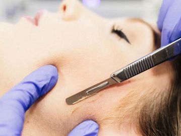 Dermaplaning uses a medical grade scalpel to exfoliate your skin. The results are reduction of old skin cells , dirt and vellus hairs (peach fuzz)